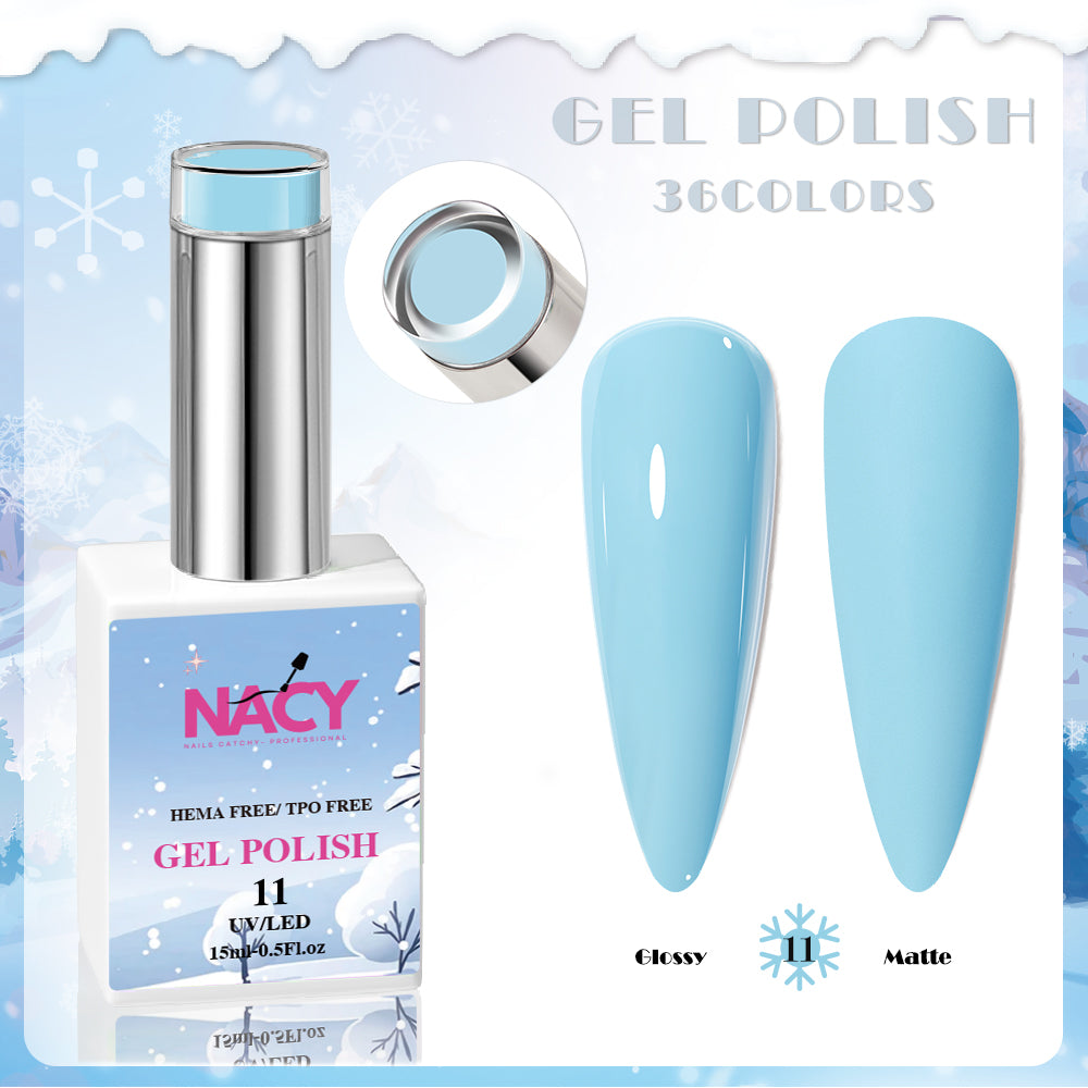 Nacy Winter Gel Color is a professional grade nail product that comes in a 0.5oz bottle. It is HEMA / TPO free, ensuring a safe and healthy application for your nails. With a variety of 36 colors in the set, you can create endless winter-inspired nail designs.