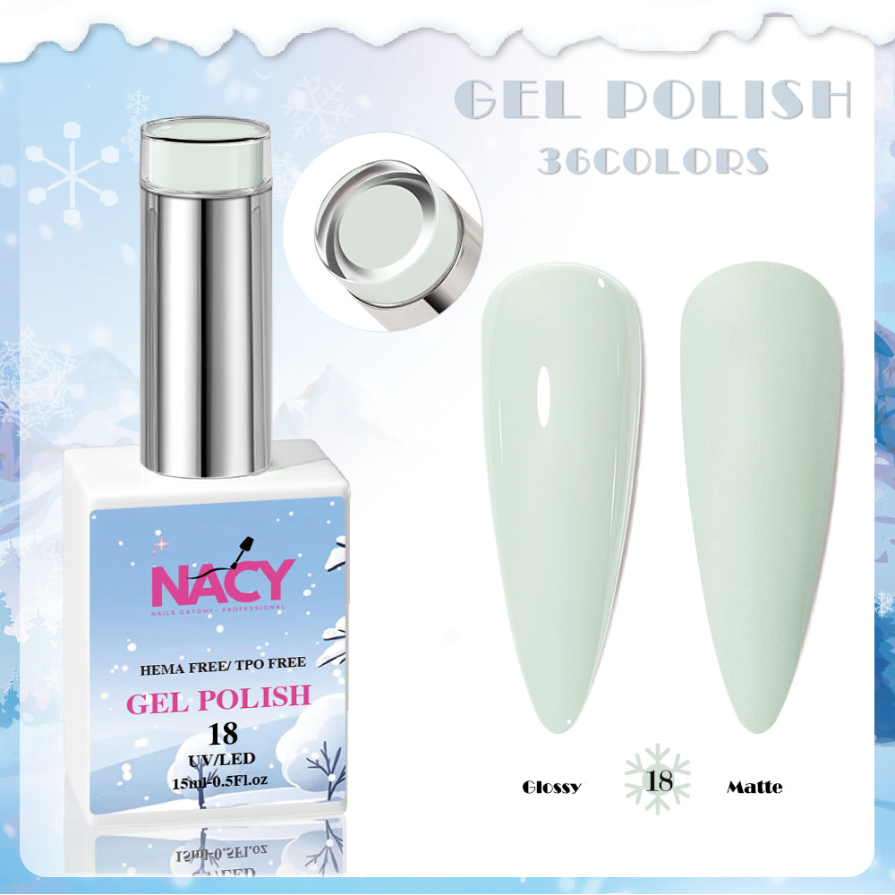 Nacy Winter Gel Color is a professional grade nail product that comes in a 0.5oz bottle. It is HEMA / TPO free, ensuring a safe and healthy application for your nails. With a variety of 36 colors in the set, you can create endless winter-inspired nail designs.